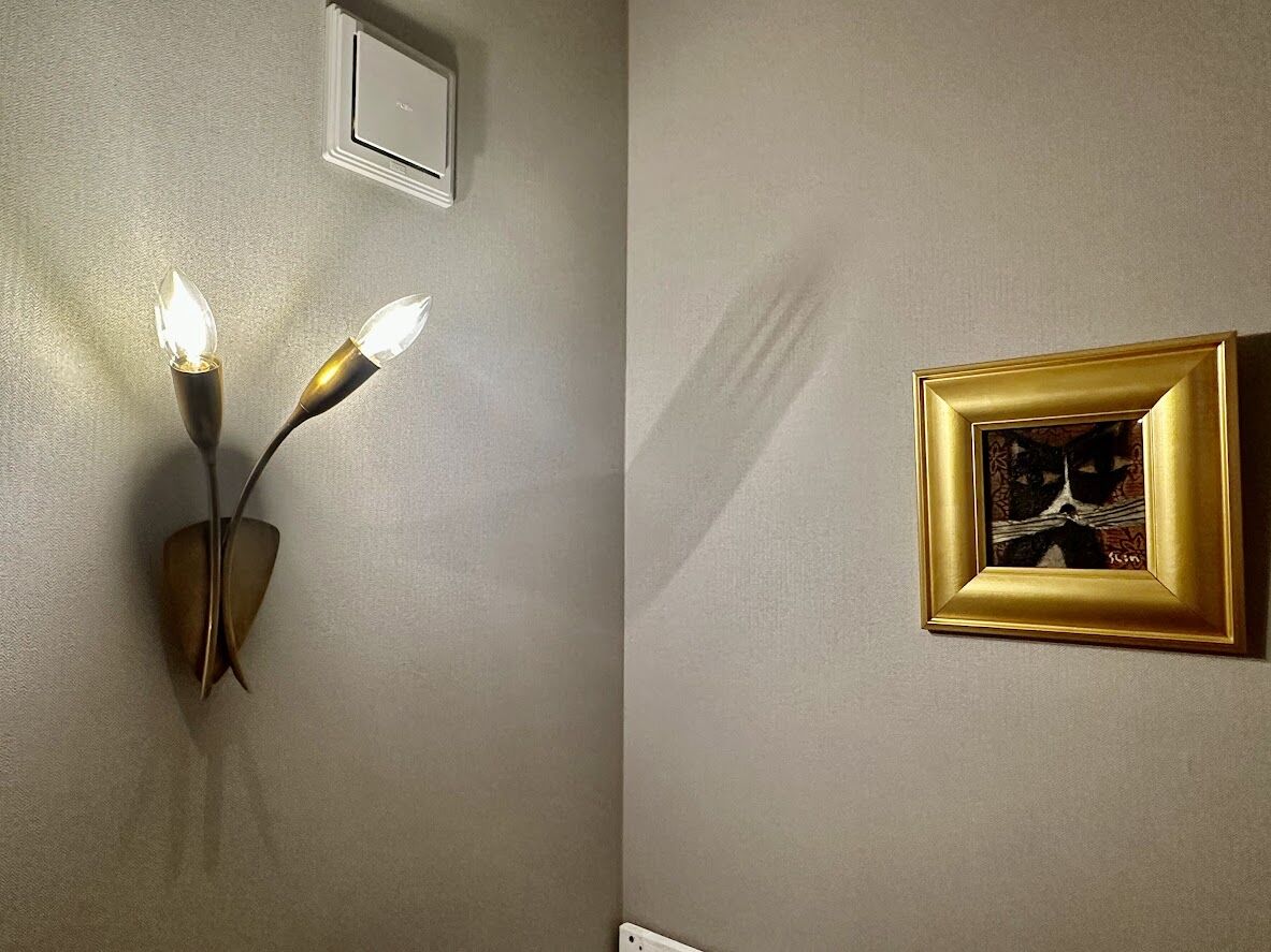 壁にはシャドウボックスを掛け、ランプを倍楽しんだり、空間に奥行きを持たせる効果を楽しめるようになりました。