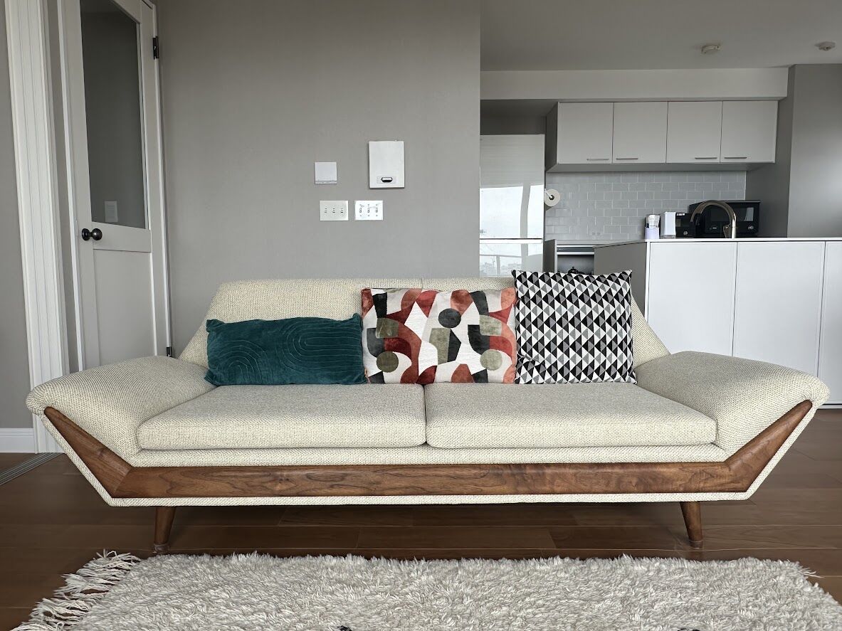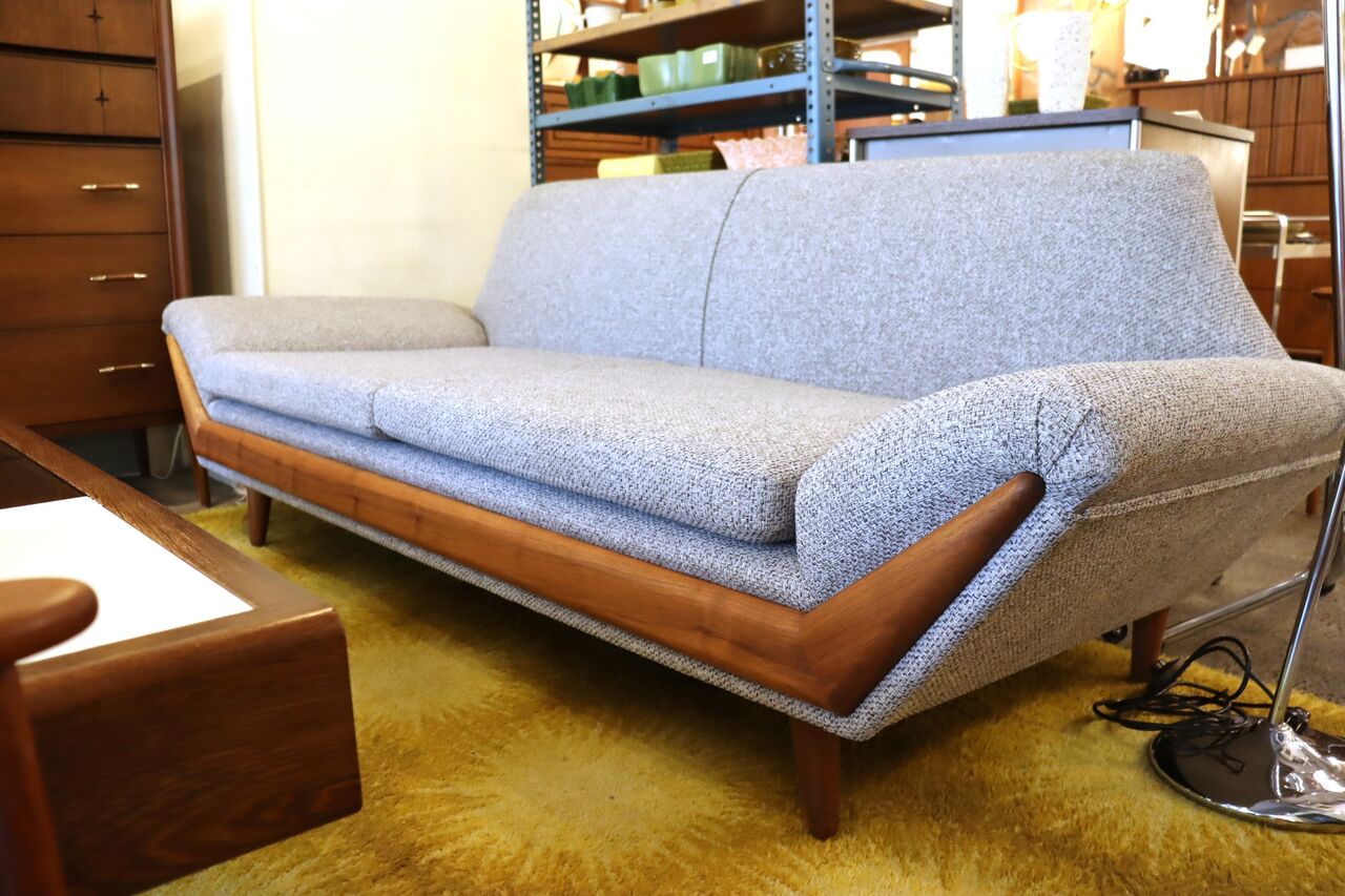 リビングはアメリカとデンマーク・オランダの共演となりました。主役はコロンとしたフォルムが可愛らしいデンマーク製ソファ。生地も張替えしました。ラグはオランダヴィンテージです。