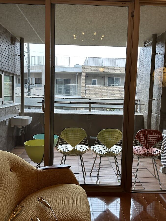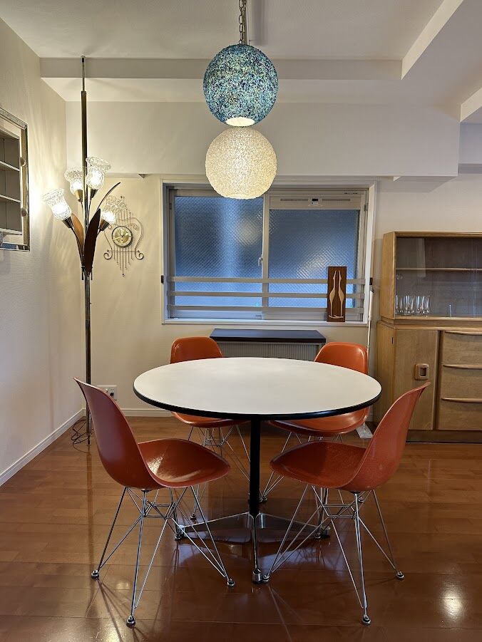最初に出会ったのは、鮮やかなオレンジ色のイームズチェア4脚でした。