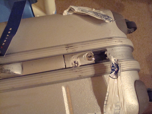 嫌な予感的中。スーツケースの鍵が見事に壊されているのにしばし呆然…