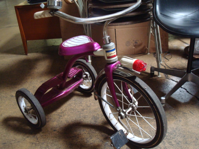今回のコンテナはビンテージバイクとアメリカ雑貨の50-O-FIND(ファイブオーファインド)さんと混載したのですが、彼らが古い錆びたラジオフライヤーや三輪車を買うので、思わずつられて買いました。