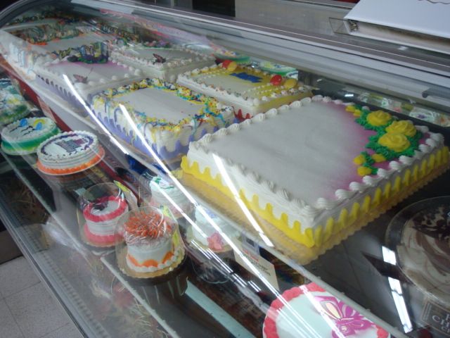 そこで見かけたこのケーキ!!あまりのカラフルさに思わず撮っちゃいました。最近日本では、こんな色のケーキは見なくなりましたよね。昔でもここまですごいのは無かったと思いますが…こんなに大きなケーキなんですが、実は値段は安くひとつ2000円くらいで売っています。