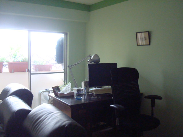 ベランダに向かって配置されたデスク。