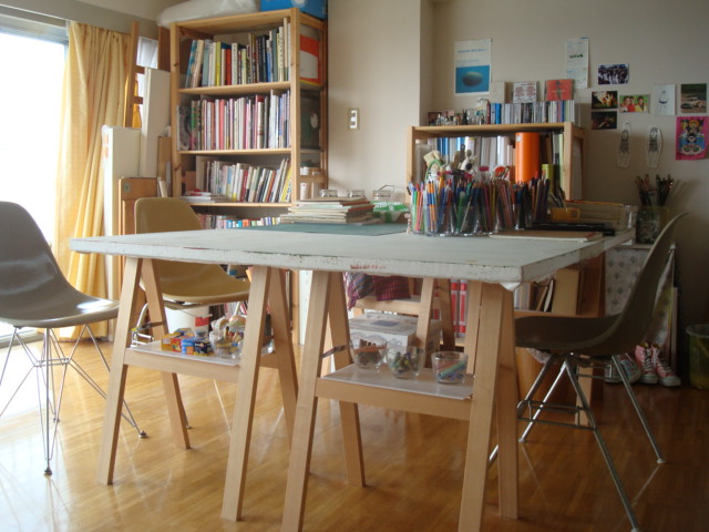 彼女のお部屋の作業台兼食卓兼、兼、兼の大きなテーブル。その回りを囲むイームズチェアを買い足しされました。