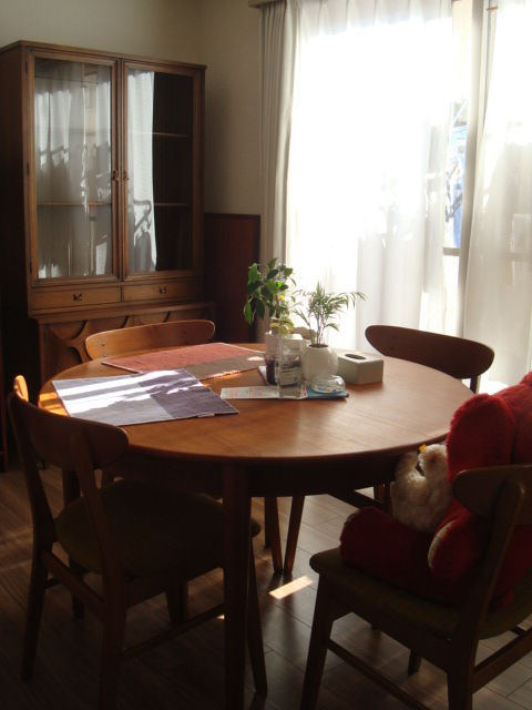 ダイニングテーブルは角がない丸いものを。会話も丸く、優しくなれそうです。