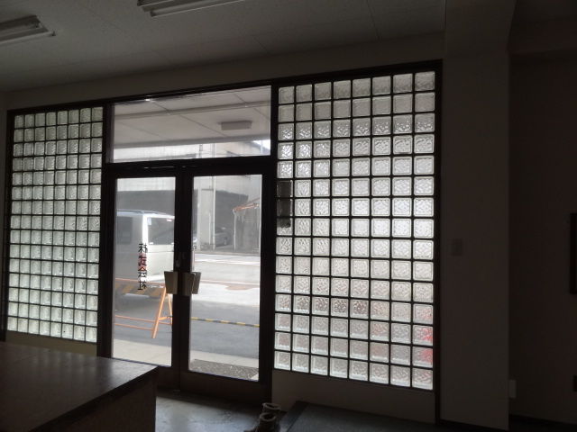 お届け先の物件も1960年代の建物。古ビル好きの私にはたまらなく魅力満載のビルでした。入口のガラスブロック。超カワイイ!いや正確には愛おしい。