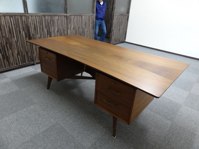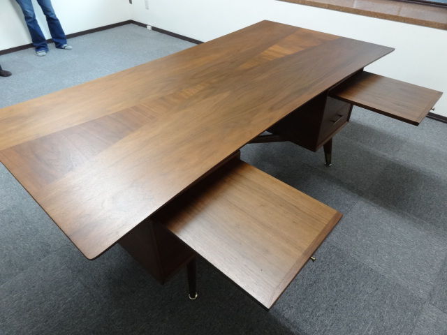 会社を経営されているお客様で、丁度お隣の物件が空いたということ、事務所が手狭だったとのことで、お引っ越しのリフォームをされていて、デスクをお探しだったところにビッグな奴がいたそうです。