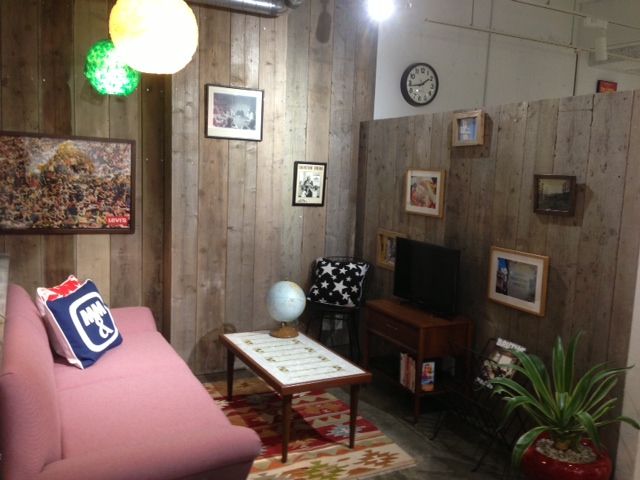 さて、こちらは待合スペースで、足場の古材を壁につけてビンテージ感のある空間になっています。この壁にこれから自分が旅した景色を飾るのが夢なんだそうです。地球儀が置いてあるのも良いですね。