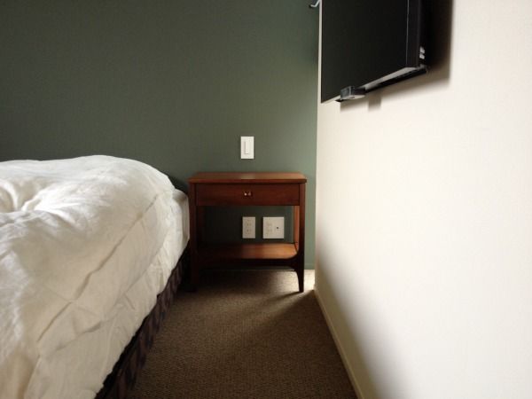 そして寝室にブラジリアのナイトスタンド。なんだか気品を感じます。。壁の緑は外壁と色を合わせて塗ったそうです。