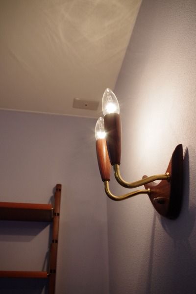 脇にはブラケットランプを。新築ならではの壁付けランプ。