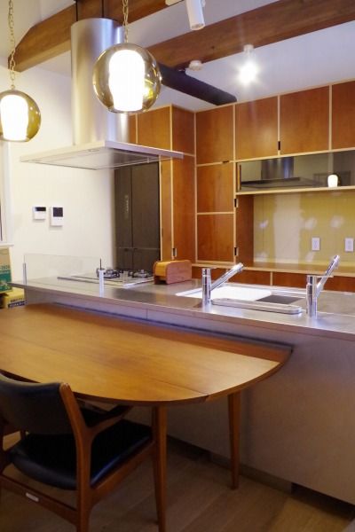 スペース上、なかなか難しいダイニングテーブルの形を、ブラジリアシリーズのテーブルが奇跡的にクリアして設置。