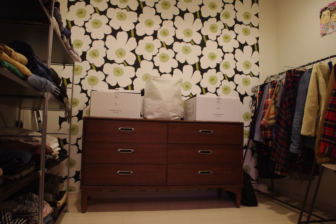 マリメッコがアクセントのあえて見せるウォークインクローゼット。