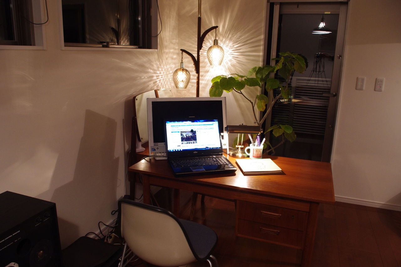 その運命のデスクがこちら。デスクが入ることで全体的に木製家具の落ち着いた雰囲気が逆に大人しくなっていたので、合わせるチェアはイームズを。少し軽やかに。
