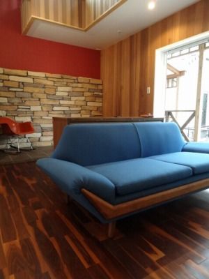 パームスプリングスオリジナルソファと、背面にブラジリアのサイドボードを。ソファは職場の方と色違いということになりますね(苦笑)。