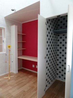 長ーい廊下には、こんなキュートな壁紙のこども部屋があります。楽しい!