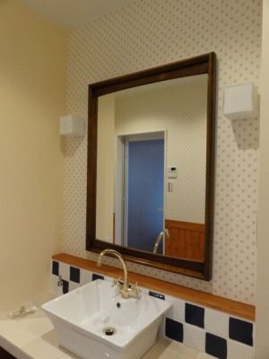 洗面所のミラーもパームスプリングスより。このところ、ミラーを新築に上手く取り付けていただいています。