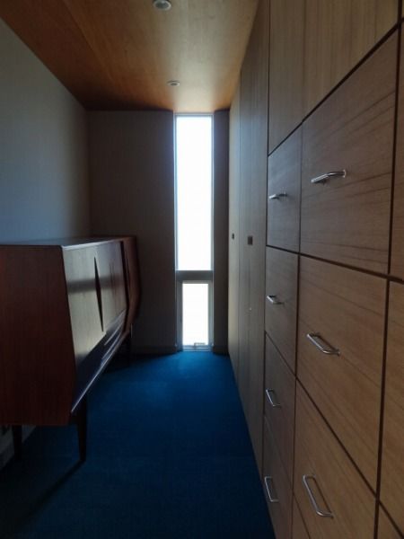 ティールブルーのカーペットが敷かれたお部屋は、旦那様の書斎。ここもこもってしまいそうな雰囲気でした。