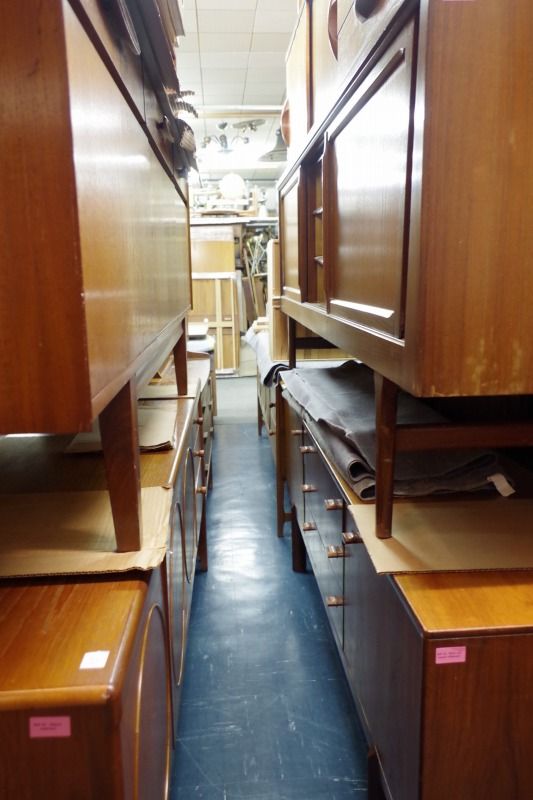 特にイギリスのサイドボードは2m越えのサイズもありますので、縦置き(側面が下)になっていたりもしていますが、そんな大物のを扱うディーラーさんの倉庫は、ロンドンから2時間半ほど走ったコッツウォルズ地方にあります。