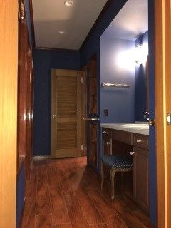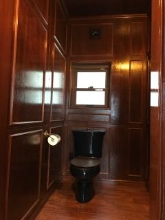 水回りスペースもお客様こだわりの空間で、オープンなトイレやパウダールームと呼びたい洗面所など、こちらもアメリカンクラシックな重厚感あふれる内装。