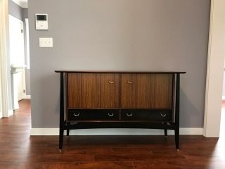 家具はイギリスサイドボードにヘイウッド(US)のラウンドテーブル、50’sステップエンドテーブル、アメリカ製L字ソファ。イギリスとアメリカのビンテージを上手くミックス。
