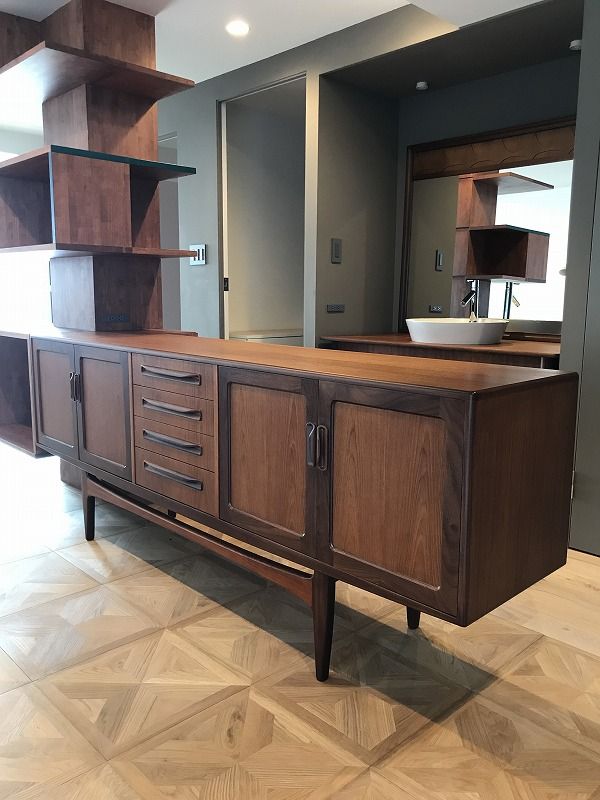 今回こちらのお客様は、ビンテージ家具とお部屋をなじませて見せるという方法で、お部屋の一部のように家具をお使いいただきました。