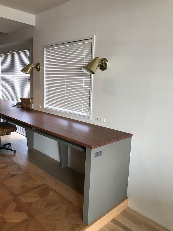 家族のデスクワークコーナーには、きらりとゴールドが可愛いブラケットランプを合わせていただきました。