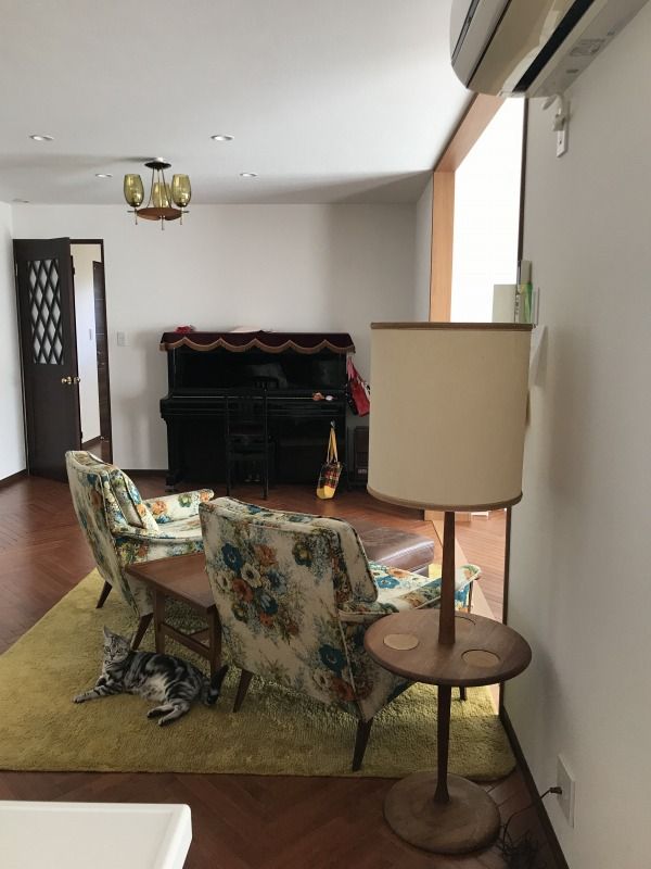 こちらにはピアノコーナーと、現リビングで遊ぶ子供たちを眺められ、ご夫婦でまったりとした時間もすごせるようシングルソファを2脚配置しました。