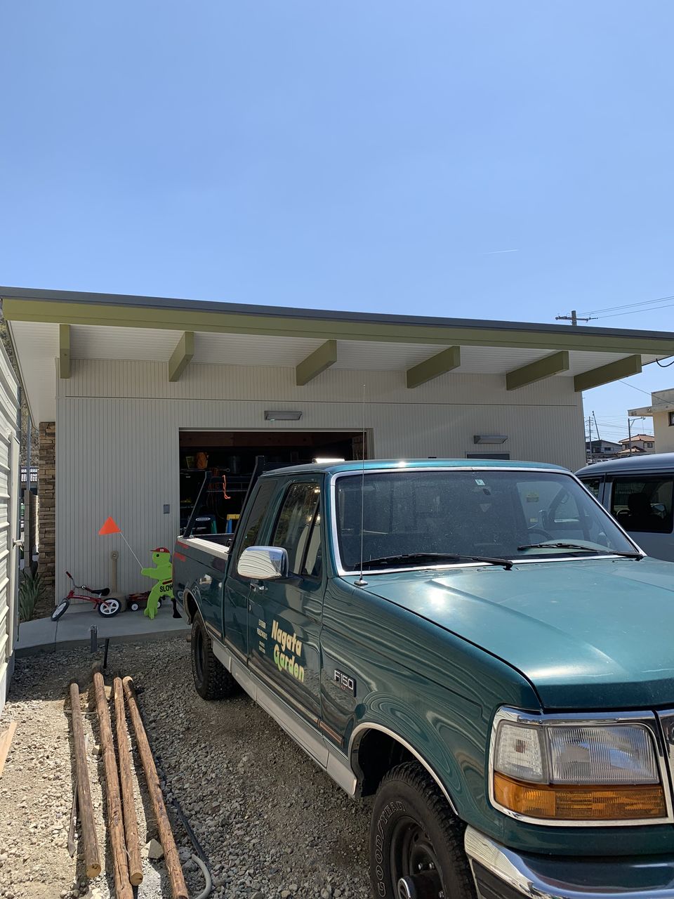 バタフライの反対の羽の方はガレージで、造園業アイテムがぎっしりと収納されていました。
