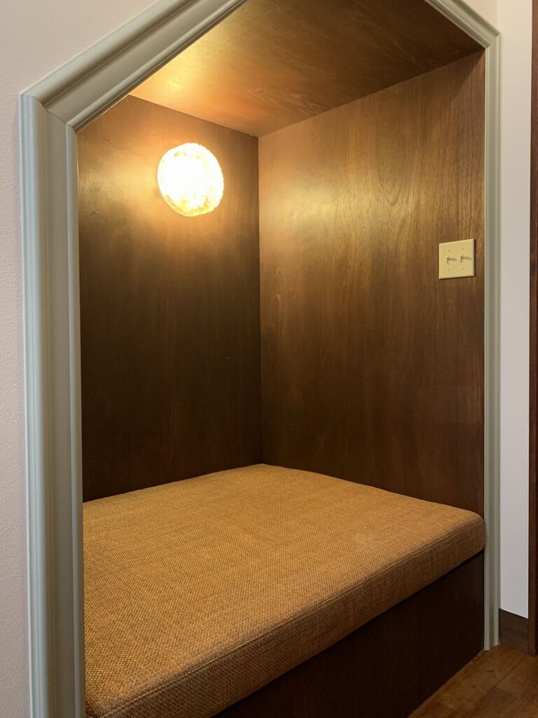 奥にある一部屋に向かう廊下には階段下のヌック(こもれるスペースのこと)があります。