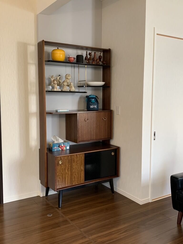 サイドボードが3台にディバイダーにオリジナルソファとこれまでの集大成!ビンテージ家具好きにはたまらない空間に。