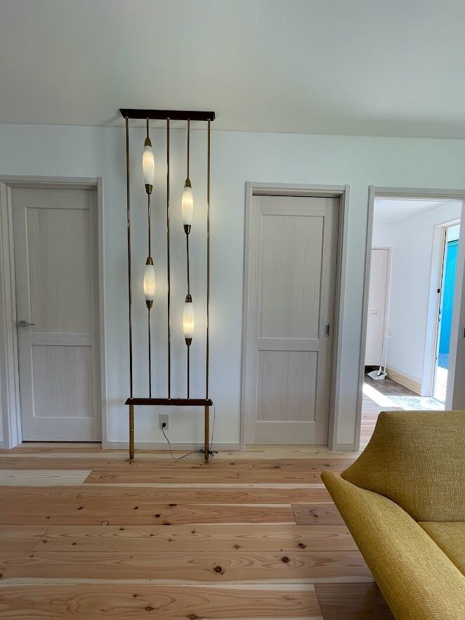 チラリ(角度によってはがっつり)と映りこむランプは、ディバイダーランプ。こちらはかなりのレアピース!間仕切りがになるフロアランプです。