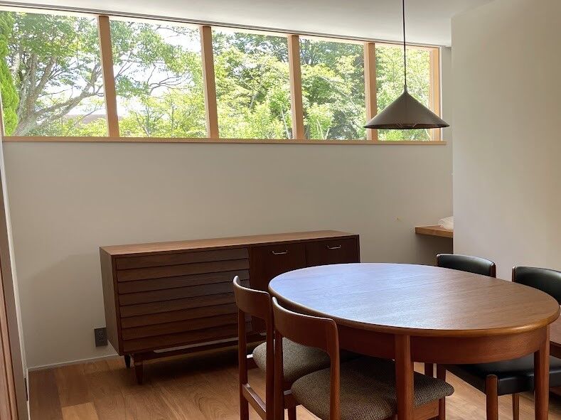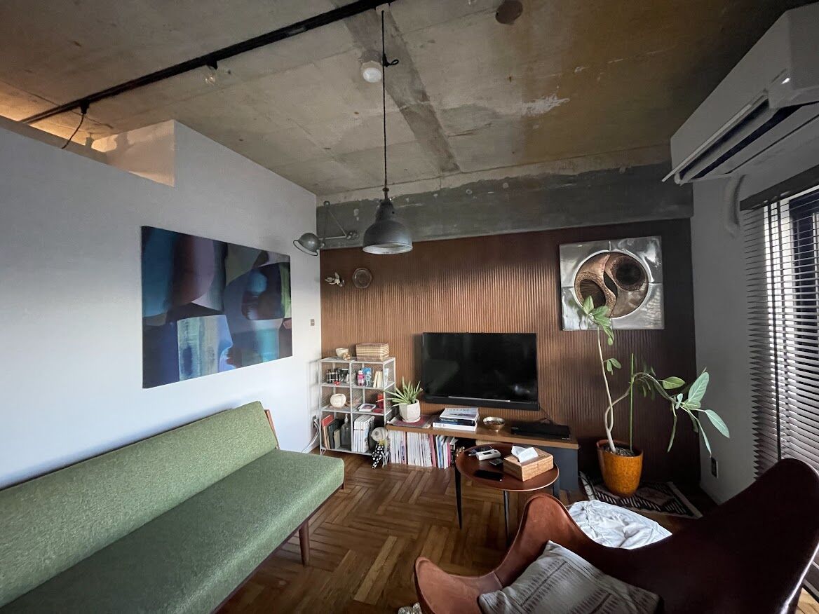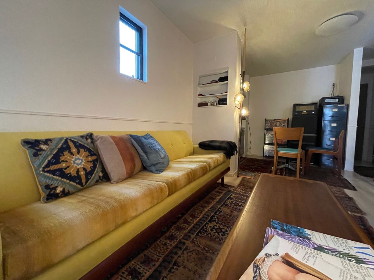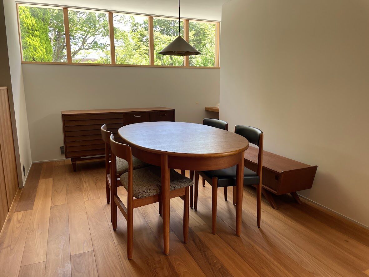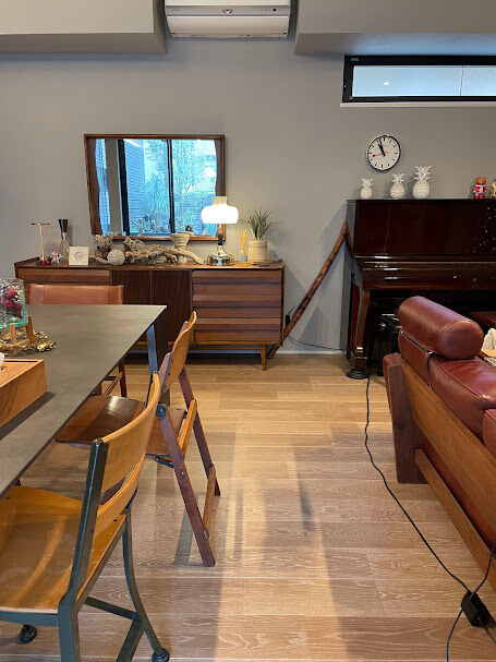 壁のウォールクロックもパームスプリングスから購入いいただきました。