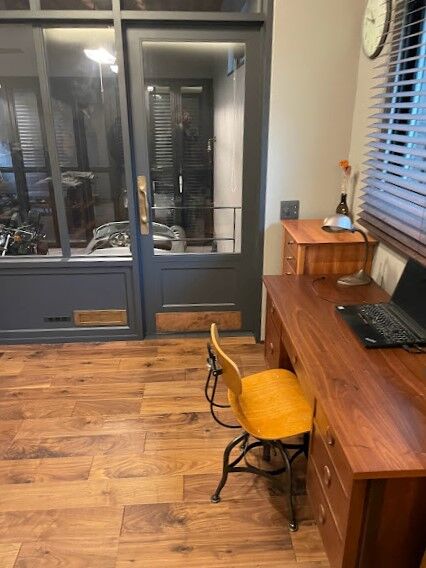 現物を知っている私たちには、確かにチーク材とフロストガラス、サイズ感が同じくらいで合う!とすぐわかったのですが、お客様は直感のみ。