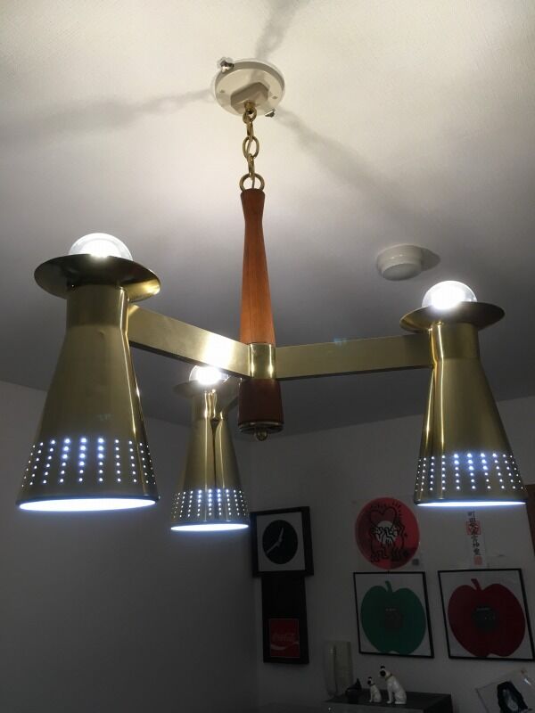 ダイニングはGプランの丸テーブル&丸チェアのセット。それに合わせてペンダントランプ、ブラケットランプも白×チークのウッドパーツが付いたものを使いました。