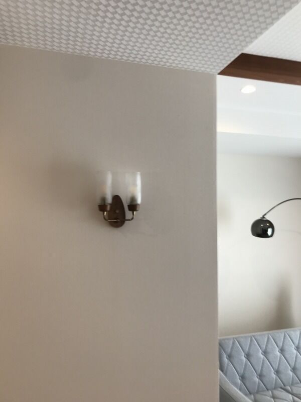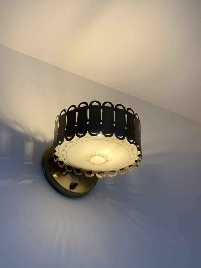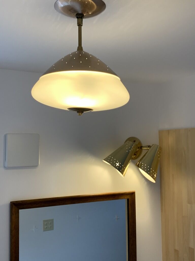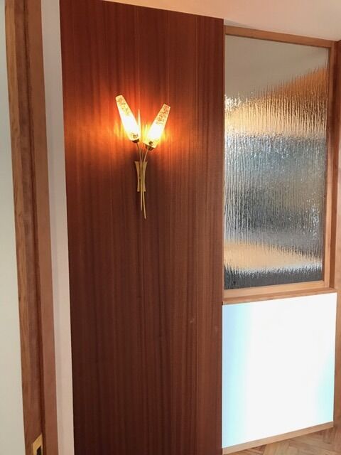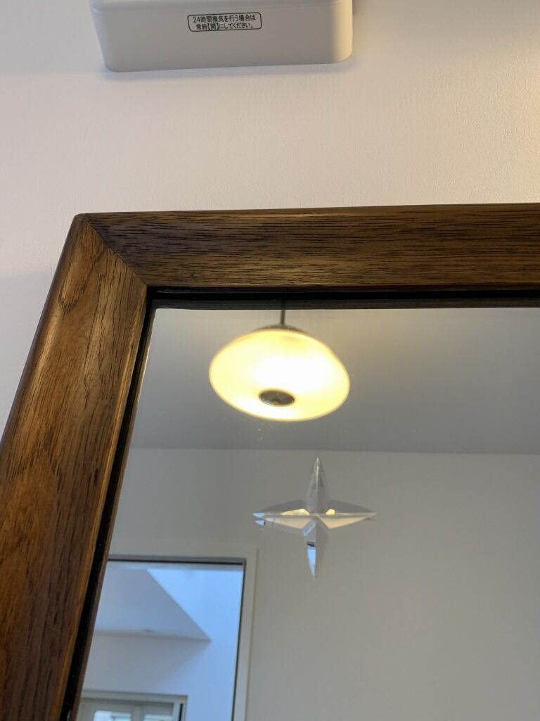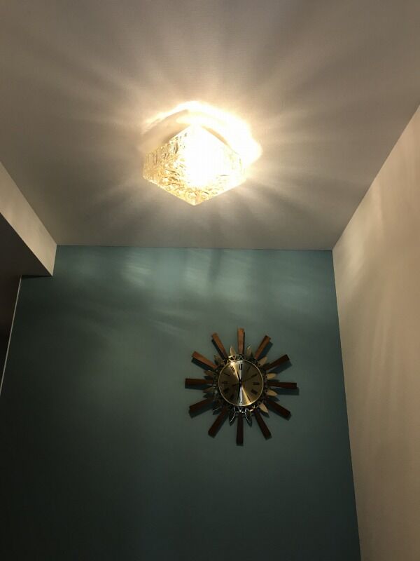 正確にはブラケットランプが白いガラスだったので、それを映えさせるためにしたのが、功を奏した空間です。リビングとの扉に付けたガラス部分からはスパイダーがのぞきます。