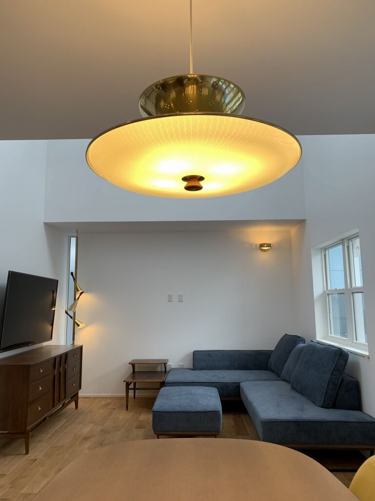 奥の部屋は、シングルソファとシェードランプを置いて大画面で映画を楽しむ映画部屋もあります。ここにエイドリアンシングルソファを設置予定です。
