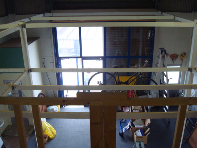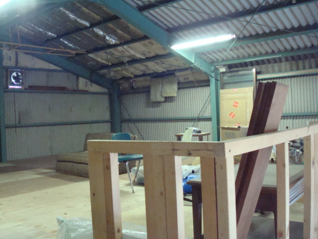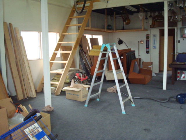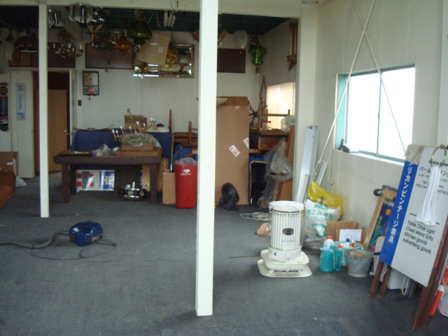 現倉庫のほうは、8割方お引越しが完了しました。倉庫の2階天井を半分剥がした様子です。