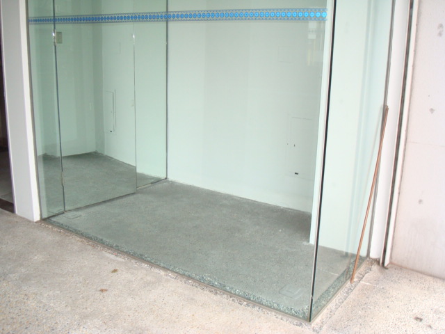 それをめくるとコンクリート。なのですが、もちろんそのPタイルはボンドで貼り付けられていて、ボンドの跡が残ります。
