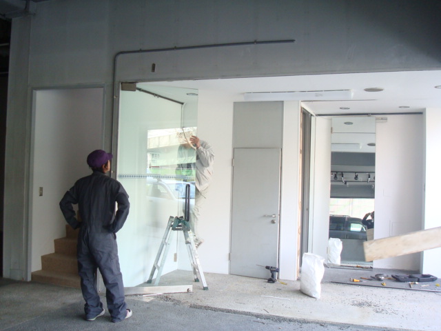 壁は妊娠6ヶ月のころに、道板に乗ってせっせとペンキ塗りをしたのを思い出しました。幸い大家さんのご好意で、この壁と2階、前面ガラス扉は残して行く事になっています。