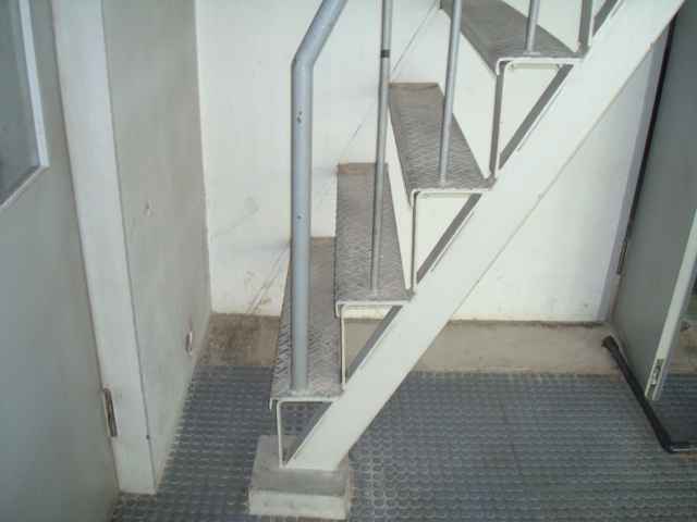 現状は床の半分くらいの面積に、45cm角のPタイル(グレーのツブツブ付き)が敷き詰めてあります。