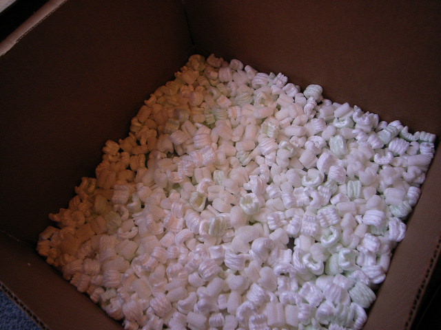 実はポップコーンではなくてピーナッツと言われる梱包材なのです。まぁいろいろ名前は別にありますが。