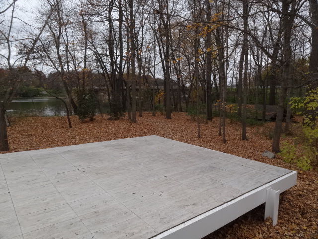 ファンズワース邸があるのは、川岸の林の中。日本でも大きな河川の下流域では木が生い茂った幅の広い岸になっていますが、あの感じです。