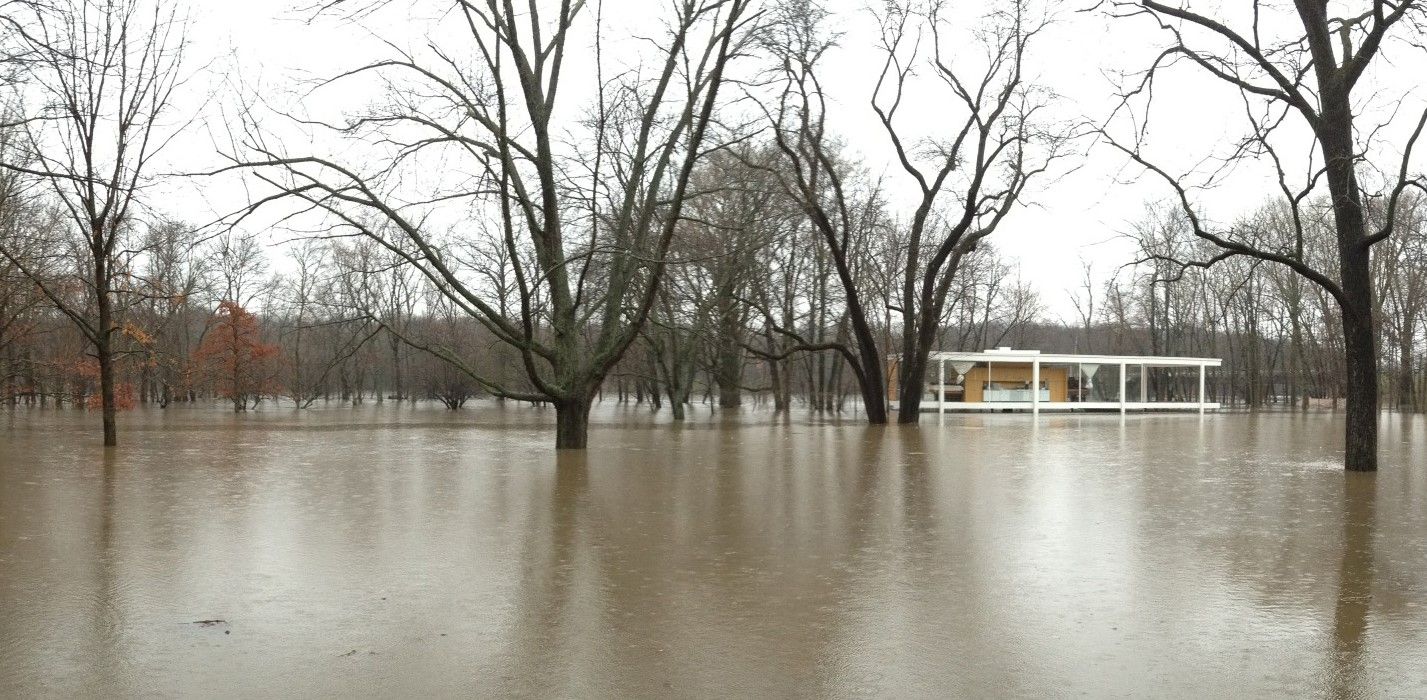 もちろん長年の風雨や経年によるものもあると思いますが、じつはファンズワース邸はある問題に直面しています。