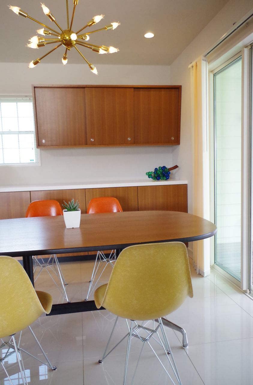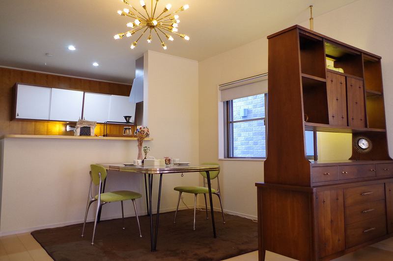 お手本は海外のミッドセンチュリーモダン。当初は家具のみのお話が、いつの間にか造作キッチンまでご依頼をいただき、結局LDKを全部パームスプリングスで揃えていただくほど、ミッドセンチュリーにはまったお客様です。