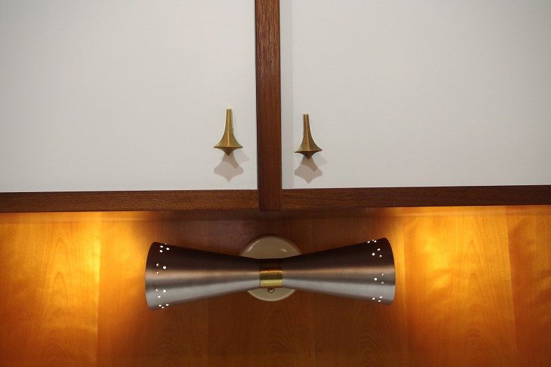 背面には一か所ブラケットランプが付いていますが、ここはお気に入りのコーヒーミルをライトアップするために取付け。斜め付けがポイント!