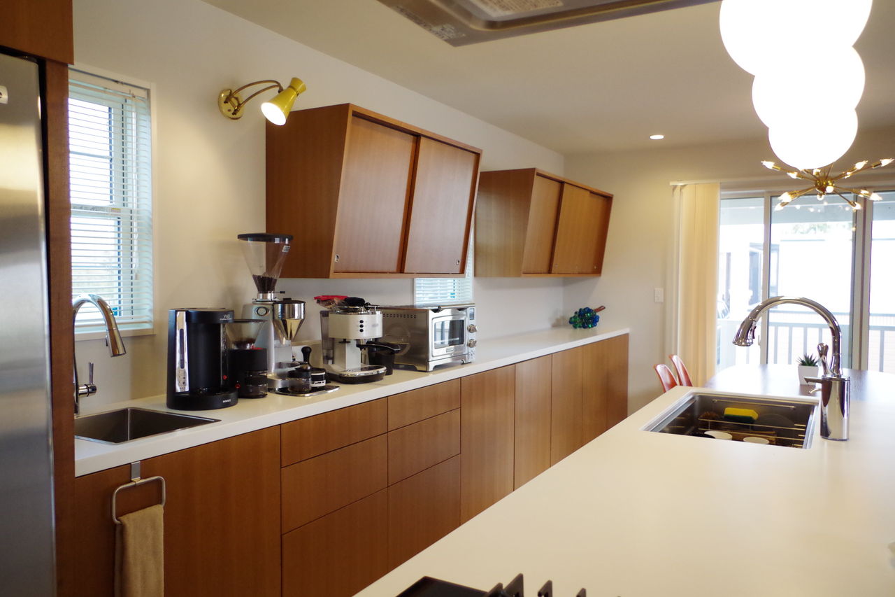 背面シンクはコーヒー専用のもの。ゆったりとした時間をすごす時には掃除が終わってきれいなメインシンクを汚さず用意ができるようになっています。