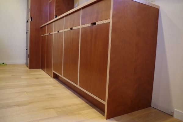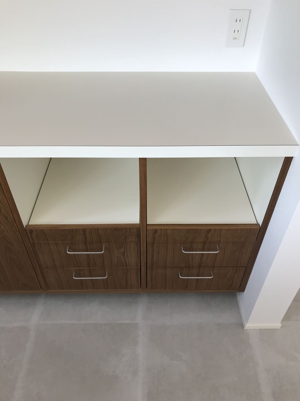 実はアイランドは別業者さんが製作されたもので、背面収納と突板を合わせるため同じロットの突板を使っていただいたりしました。