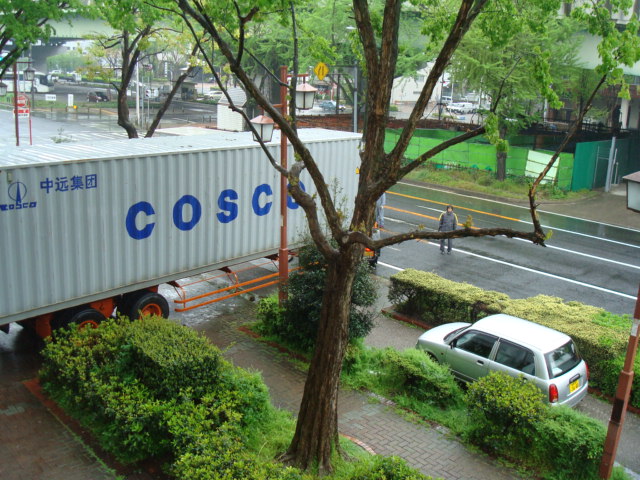 小一時間ほどして、小休止中の会話。コンテナに書かれた「HYUNDAI」を見ながら…Nまでいった?いやDぐらいかな。5/3くらい下ろしたでしょ。じゃ、予想外にUじゃない?!