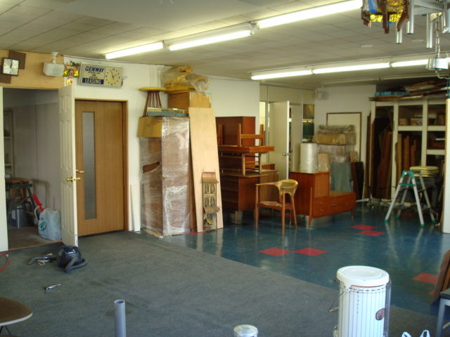 ダンボール箱に入ったランプや雑貨類を開梱、開梱、開梱。ある程度見ていただけるように、陳列し、そうして1階店舗のレイアウト変更。