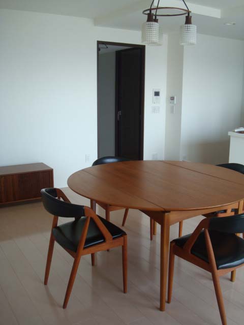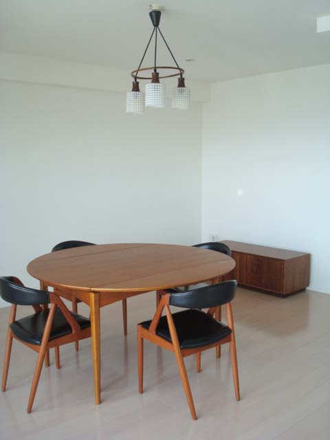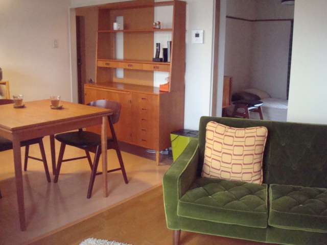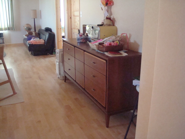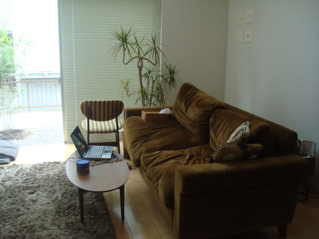 先ほどの間取図のリビングルームに設置しました。このフォルムの美しいソファが入り、リビング構想が膨らんでいるそうです。